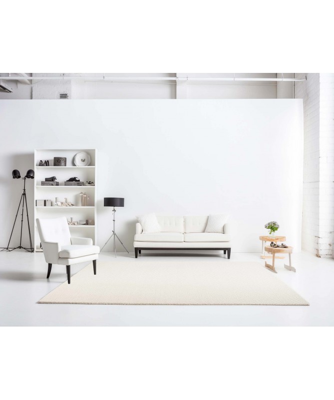 Ten elegancki nowoczesny dywan idealnie wpasowuje się w luksusowe wnętrza. Wykonany z wysokiej jakości materiałów, dywan ma ciepły kolor w odcieniu kości słoniowej. Jego gruba i gęsta struktura zapewnia nie tylko komfort podczas chodzenia, ale również wyraźnie podnosi walory estetyczne pomieszczenia. Cechą charakterystyczną tego dywanu jest delikatna jodełka.