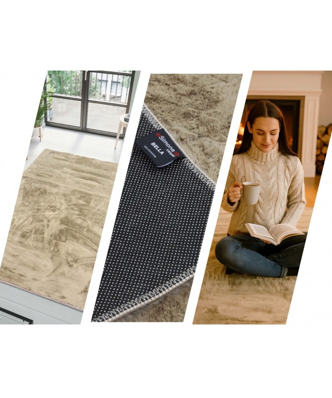 Dywan pluszowy kojarzy się z ciepłą aranżacją wnętrza. Jest w nim miło i przytulnie. Miękki i przyjemny w dotyku dywan to zazwyczaj tylko jeden z elementów, nadających tych cech pomieszczeniu. Dywan z kolekcji BELLA z włosem niczym królicze futerko to przyjemny , miękki ,gęsty i mechaty materiał w dotyku dla twoich dłoni i stóp . Przydatną cechą pluszu jest szybki powrót do stanu pierwotnego. Dlatego, jeżeli wygładzimy go w jedną stronę lub urządzimy na nim zabawę, podczas której włosie zostanie rozczochrane, wystarczy strzepnąć, by rozluźnić i zwichrzyć włókna. Materiał poliestrowy z którego został zrobiony ,nie jest do końca jednolity ale mieni się i błyszczy zmieniając w zależności od kata padania światła.